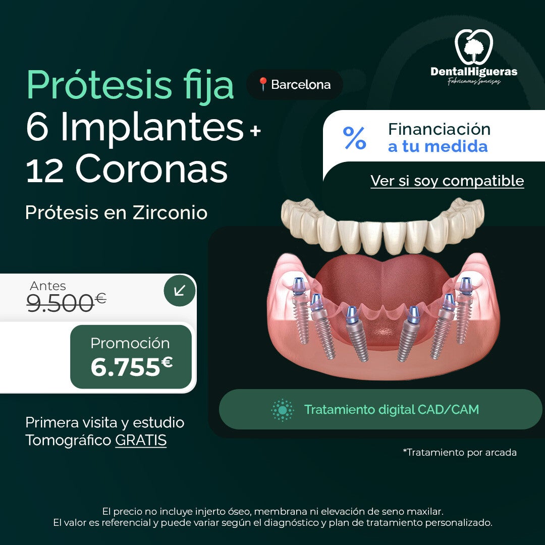 ¡La solución completa para una sonrisa brillante y saludable está más asequible que nunca! Anteriormente, el costo de 6 implantes junto con 12 coronas se situaba en 9.500€, pero gracias a nuestra promoción especial, ahora puedes obtener esta mejora dental integral por tan solo 6.755€.